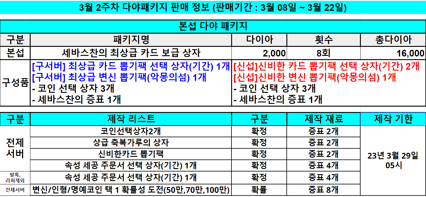 – 3월 2주차 업데이트 내용 : 계정당 생성 캐릭터 수 한 달에 최대 4개 변경