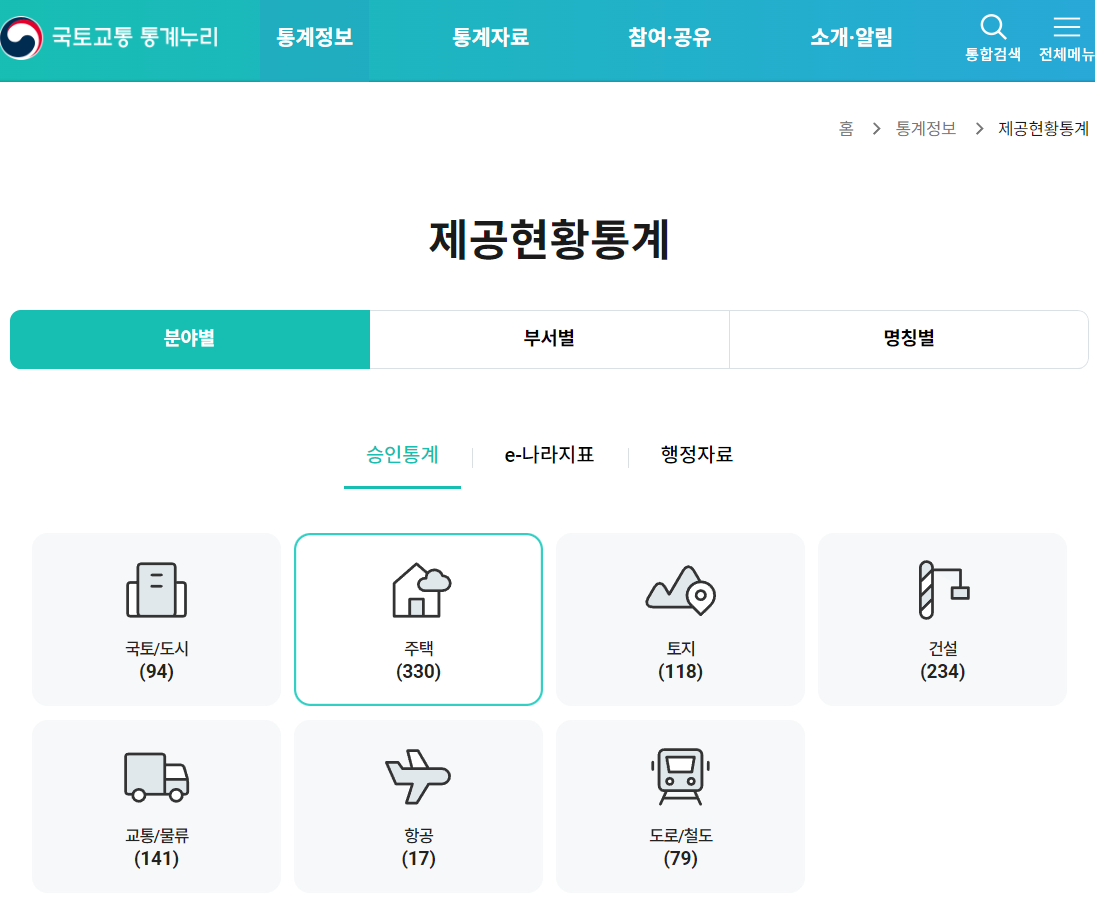 먼저 국토교통부 통계누리 홈페이지에 접속합니다.