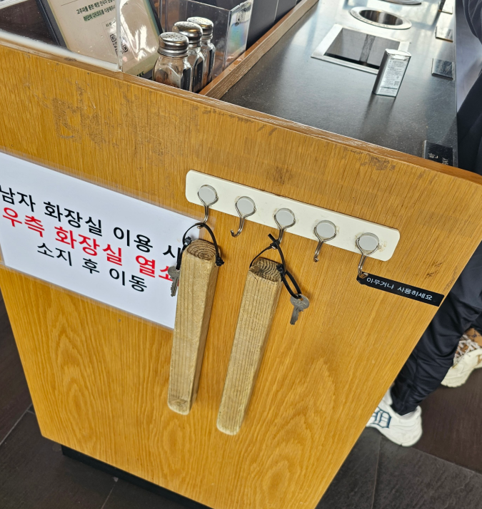 특이하게도 1층 변기 열쇠에는 테이블 끈이 있는데, 나무 같은 것.