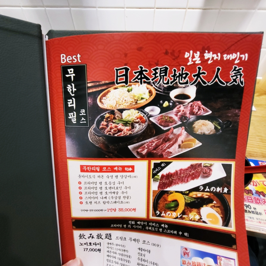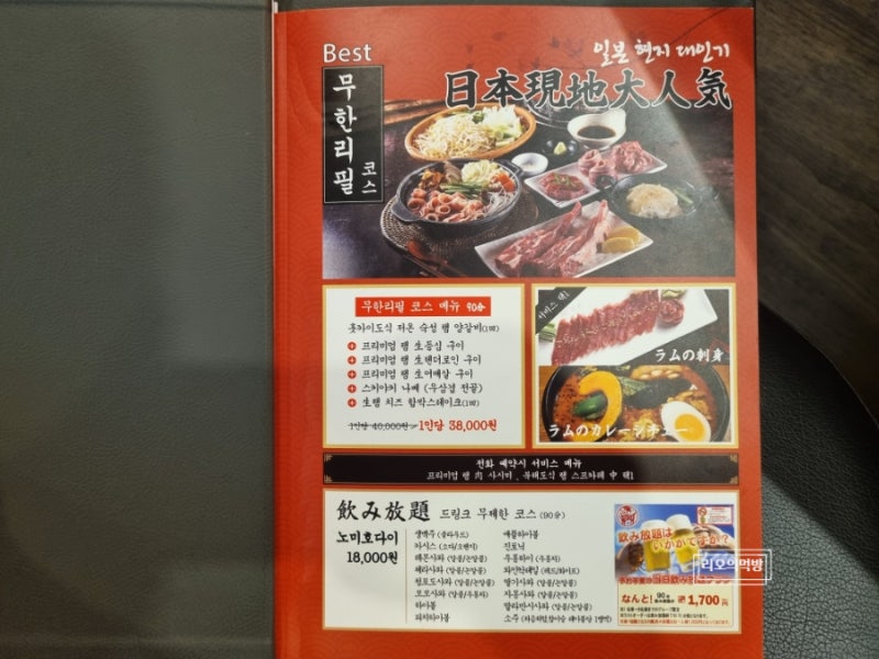 2022년 9월[방문] 인계동 양지야 메뉴 가격 뷔페 코스가 있다.그리고 드링킹 무제한 코스도 보인다.음주를 좋아하시는 분들은 드링킹 무제한 코스에서 즐기시면 좋을 것 같아요.