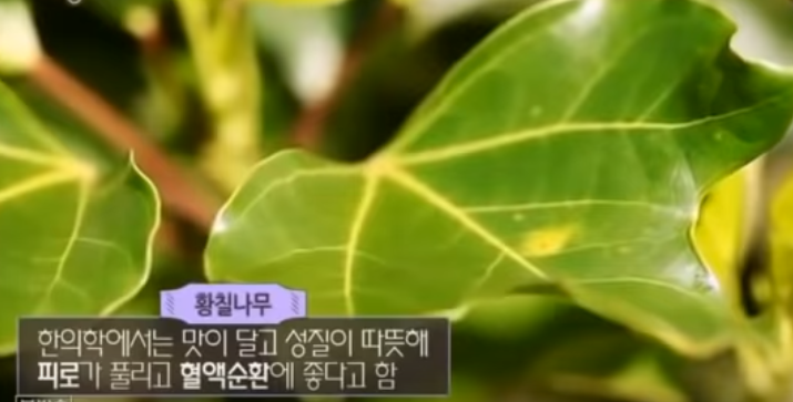 안녕하세요~~! 오늘은 건강에 좋은 황칠나무에 대해 알아보겠습니다.황칠은 산형꽃목 대구과에 속하는 나무입니다.한국의 남쪽 지역과 제주도, 그리고 일본의 오키나와 등을 원산지로 하고 있습니다.겨울에도 낙엽이 지지 않는 것이 특징이며, 약 15미터 정도 자라는 큰 나무입니다.이 황칠 껍질에 상처를 내면 노란색 추출물이 나오는데, 이 추출물은 황칠이라고 해서 예로부터 목공예품을 만드는 데 도료로 사용되어 왔다고 합니다. 이 황칠을 하면 목공예품의 색깔이 더 화려하게 빛나고 그 가치를 더 높이는 거죠.뿐만 아니라 사람의 몸에도 좋은 여러 성분들이 있어서 건강식품으로 많은 사랑을 받고 있는데 특히 전남 완도 지역에서 정말 큰 인기를 끌고 있다고 합니다.