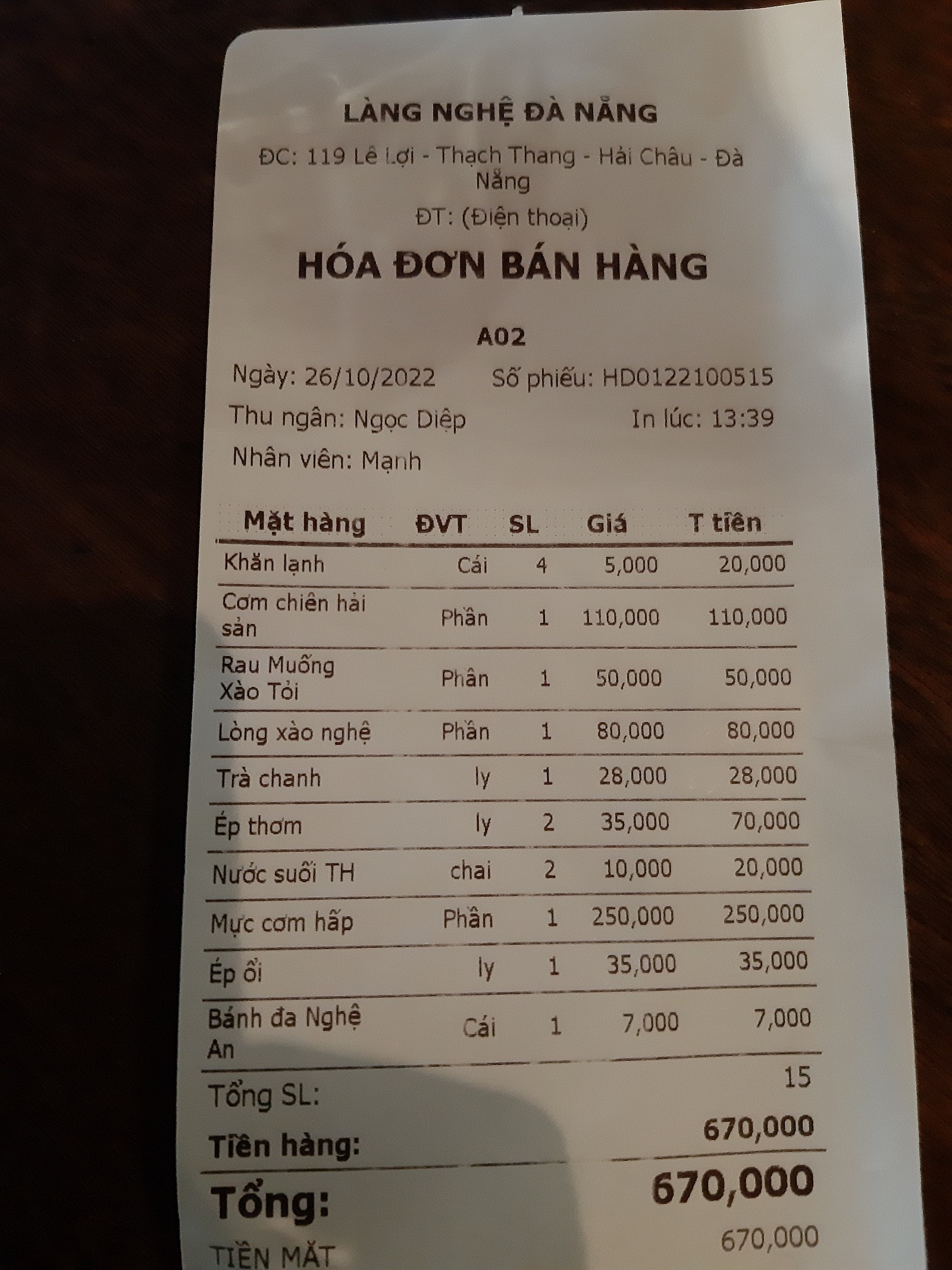 Ulangi가 먹고 싶어 죽겠다고 해서 250,000 VND를 주문했습니다.