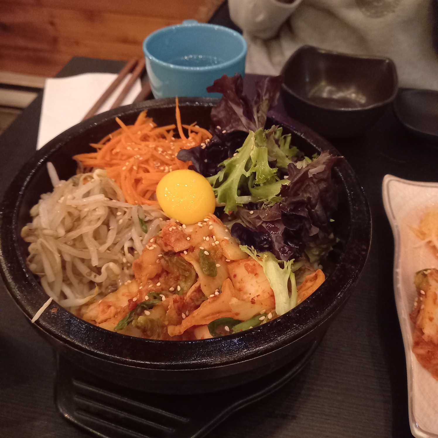 그리고 오늘 밤 우리는 한식당에 갔다. 놀랍게도 몬트리올에는 한식당이 많다. 후기가 좋은 곳에 가서 비빔밥과 전골을 주문했는데 한국에서 먹던 맛과 똑같아서 놀랐습니다.