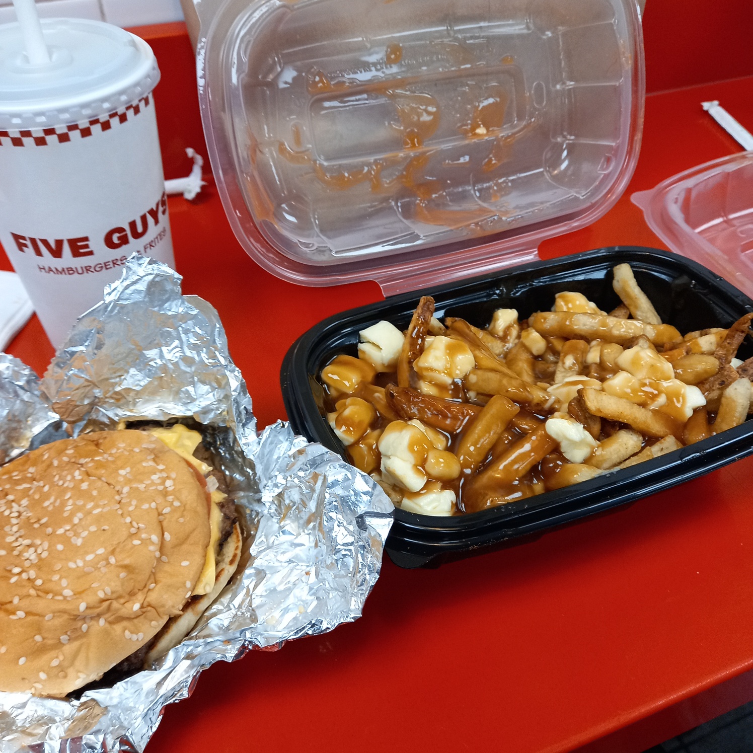 이어 파이브가이즈는 달려가 버거를 먹었다.