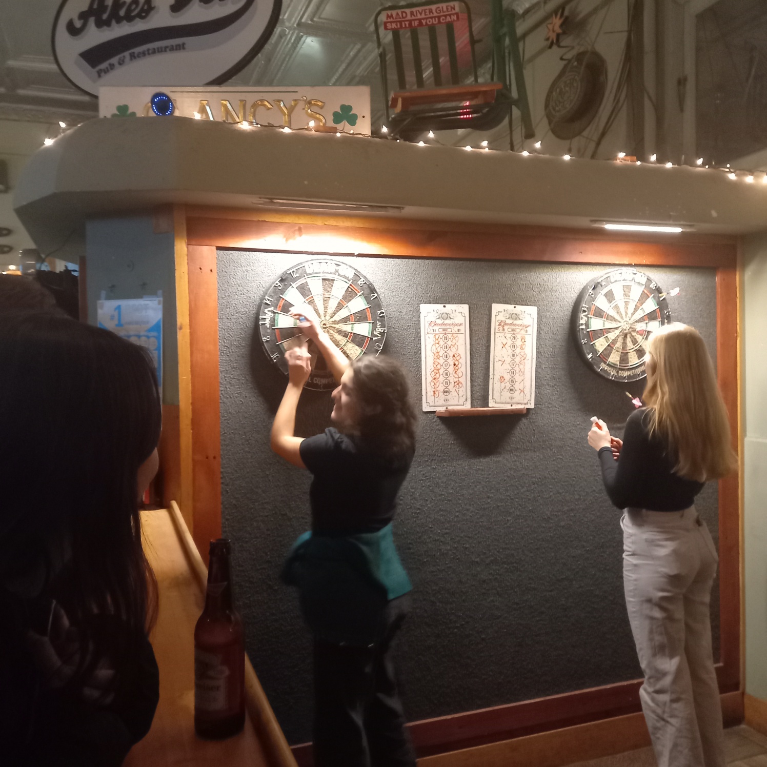 술집에 다트가 있었고 매드 루카스가 과녁을 향해 매드 안토넬라에게 다트를 던졌습니다. 안토넬라가 죽지 않았으면 좋겠다.