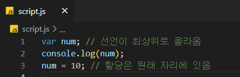 선언이 맨 위로 올라가기 때문에